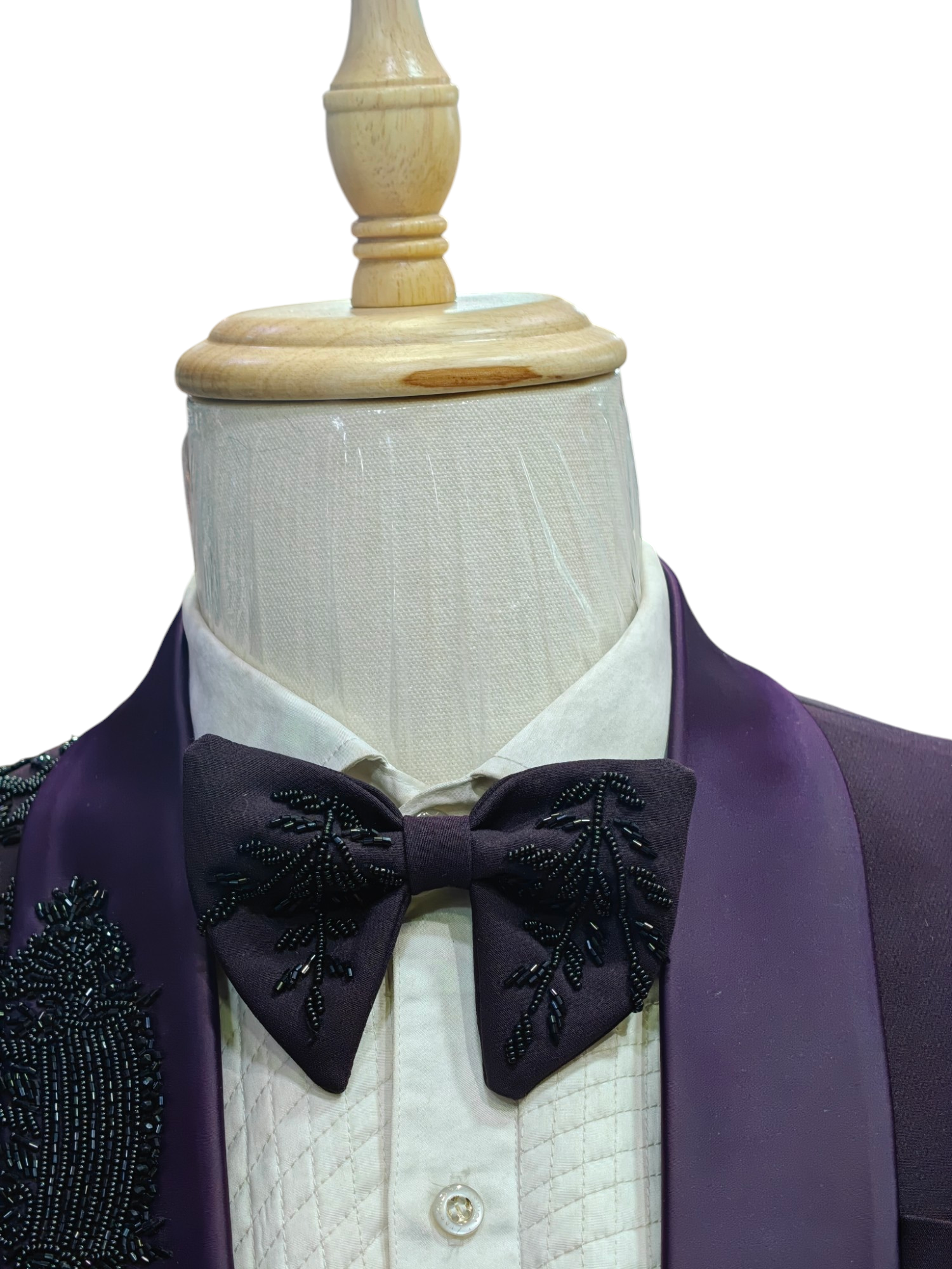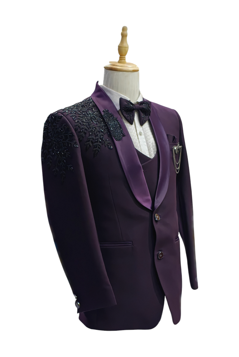 Dark purple 5- piece tuxedo with curtdana embroidery