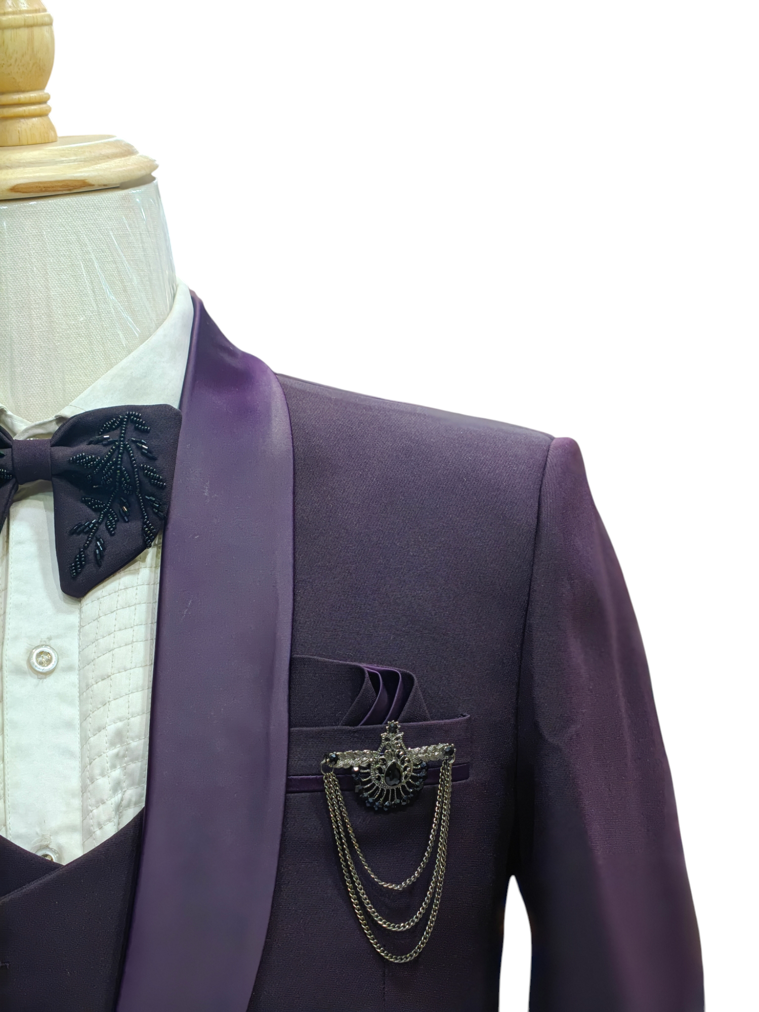 Choose Rituhar to make a bold statement on your special day. Men's Dark purple tuxedo.